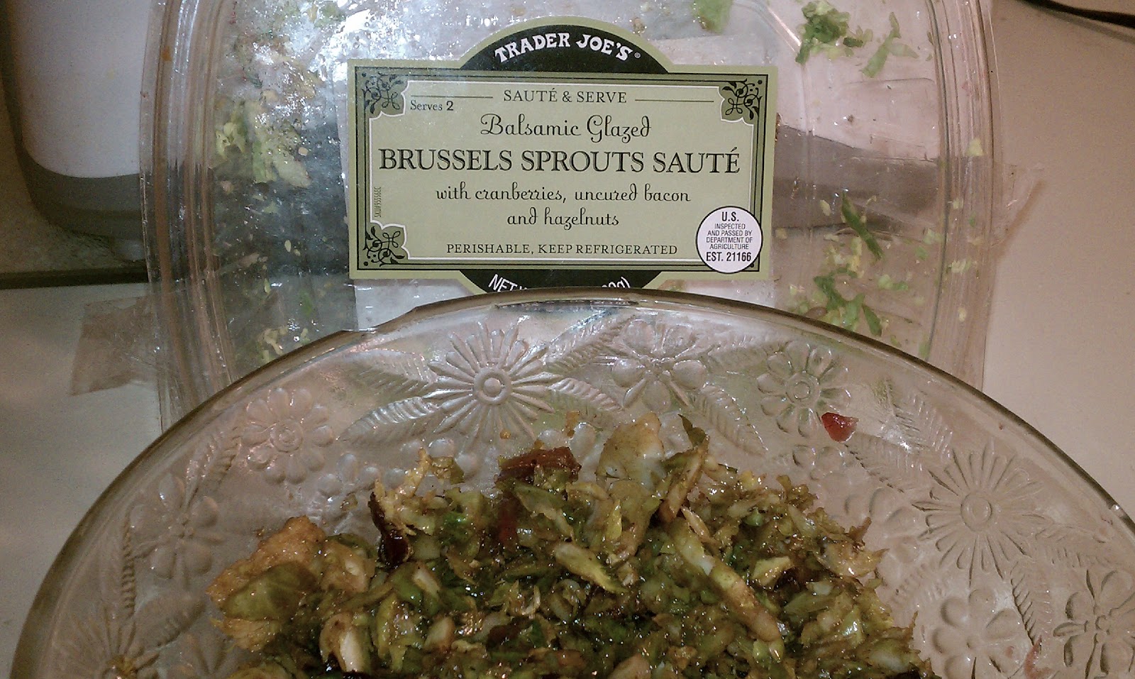This freshly packaged Brussels Sprouts Sauté comes all together with cranberries, onions, bacon, hazelnuts and container of balsamic dressing.